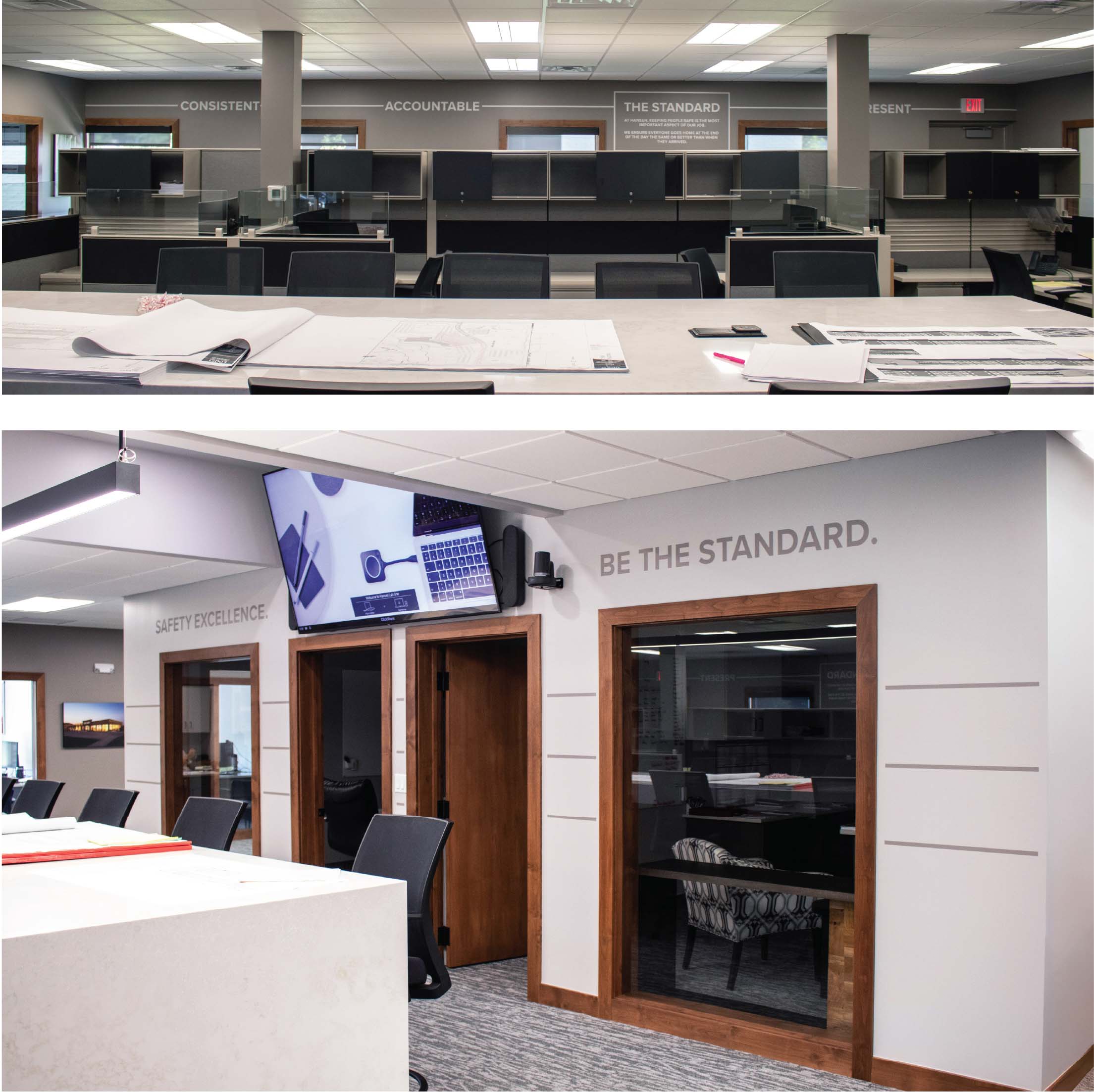 Brought in early, our team helped plan the space before construction began. The goal was to refresh the office space to reflect Hansen’s values while honoring its roots.