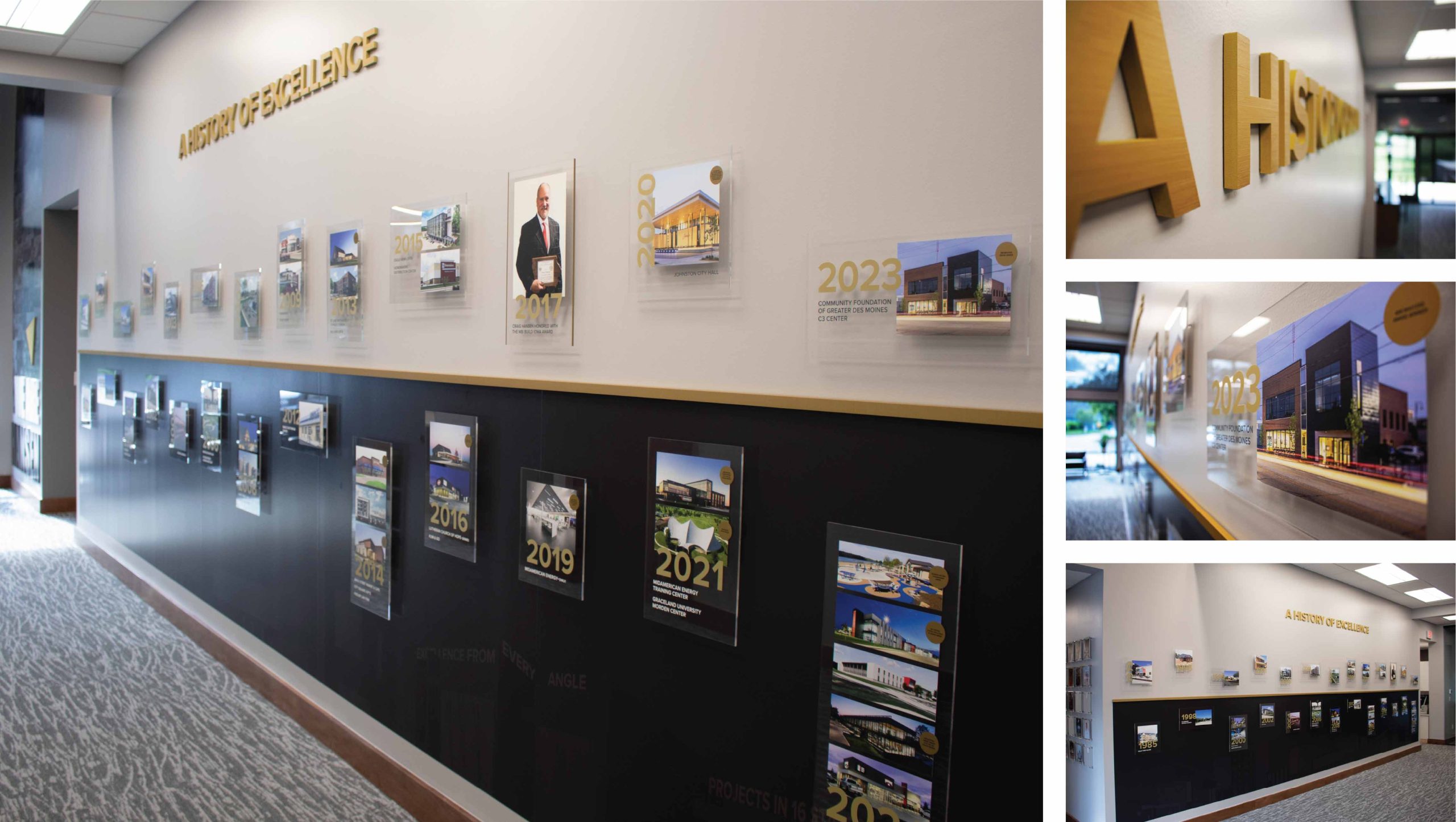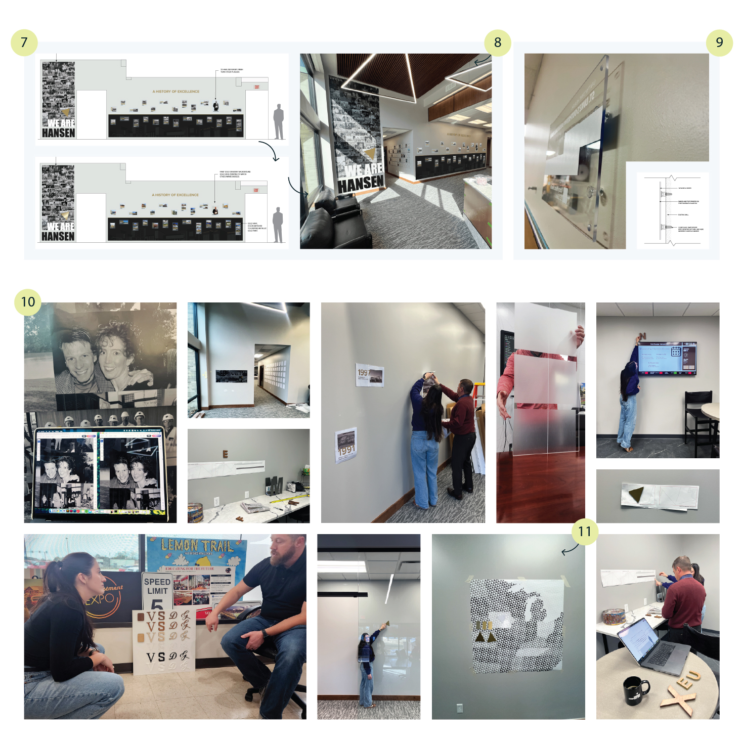 To bring this vision to life, we developed internal messaging features that highlighted the team’s achievements, values, and people, and updated the exterior signage. Our team also designed a timeline wall that brings Hansen’s story to life for both visitors and employees.